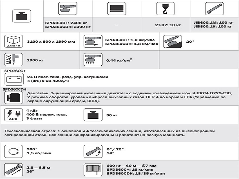 İlk olarak, damgalama. Denge ayağı tamamen hidroliktir ve istenilen herhangi bir pozisyonda konumlandırılabilir. İkincisi, radyo uzaktan kumandası. Jekko SPX 1280 mini vincinin yeni bir radyo uzaktan kumandası var. Üçüncüsü, yeni hidrolik sistem. Bu vincin benzersiz yanı, çalışmayı daha hassas ve pürüzsüz hale getiren yeni hidrolik sistemdir. Bu, bu güçlü mini vinci, serideki en küçük modelin ince motor hissini verir.